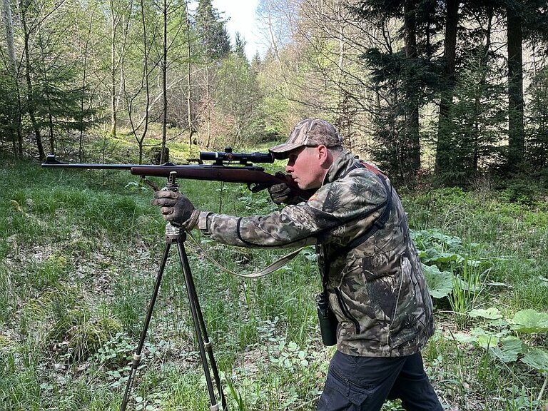 Bei der aktiven Jagd muss der Schuss auch mal liegend, knieend oder stehend abgegeben werden. Für alle Anschlagarten gibt es unterschiedliche Varianten und man sollte diese kennen, am besten sollte man auch alle selbst ausprobiert haben. Nur so ist die Jägerin, ist der Jäger auf jede vorkommende Situation im Gelände vorbereitet.