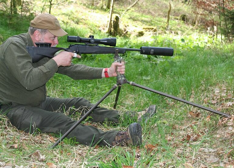 Mit Auflage: Nutzung eines Dreibeins, Bergstocks oder eines anderen stabilen Untergrunds zur Unterstützung der Waffe.